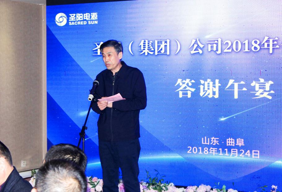 11月24日,圣陽(集團)公司2018年供應商年會在曲阜杏壇賓館成功舉行,公司董事長宋斌、高級副總裁王平、財務總監宮國偉等相關領導及來自全國各地的60余家供應商代表,齊聚一堂、交流經驗,共謀新理念、新發展,開啟未來合作新征程。